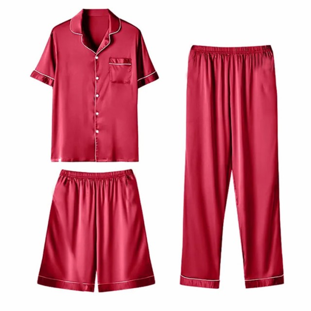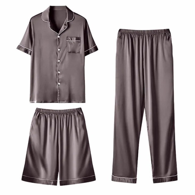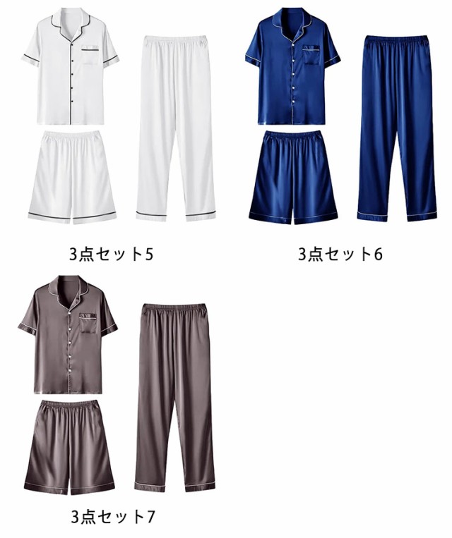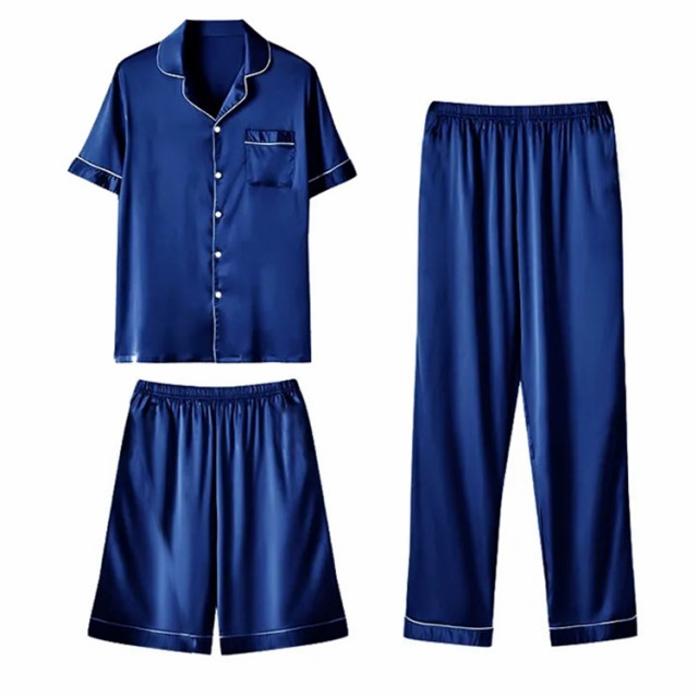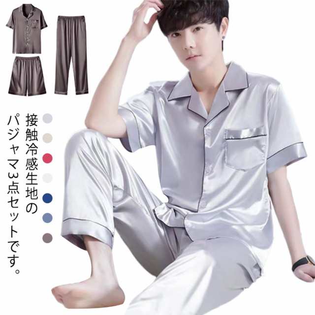 XL 冷感 パジャマ ロングパンツ 接触 接触冷感 3点セット 涼しい ひんやり 上下セット 半ズボン アイスシルクパンツ 紳士 メンズ 短パン 夏用 部屋着 ナイトウエア ルームウエア おしゃれ 寝間着 寝巻 誕生日 父の日 敬老の日 M L 涼しい 2XL 3XL 前開き