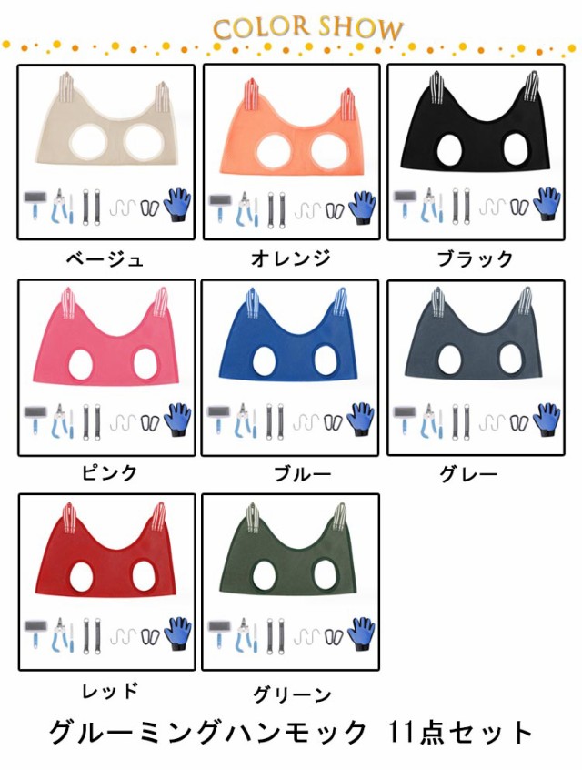 | サイズについての説明 | セット内容:トリミングハンモック*1個 カナビラ*2個 S字フック*2個 犬 猫 爪切り*1個 爪やすり*1個 櫛*1個 毛取りブラシ*1個 毛玉取り手袋*1組 S M L サイズ:写真通り ※上記サイズは平置き実寸になります。サイズ表の実寸法は商品によって1-3cm程度の誤差がある場合がございます。 |