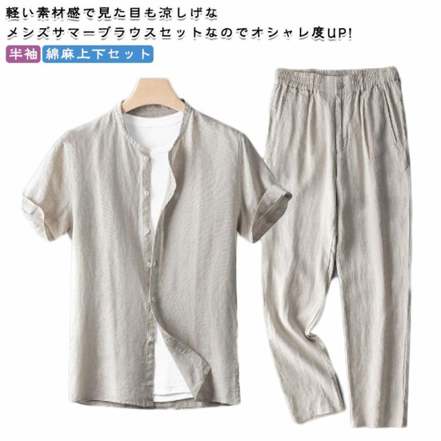 涼しい 紳士服 夏 セットアップ サマー ブラウス メンズ リネン シャツ テーラードジャケット ルームウェア 春 薄手 セットアップ Tシャツ パンツ 部屋着 半袖 リネンパンツ 大きいサイズ 上下 サマージャケット セット 父の日 ギフト