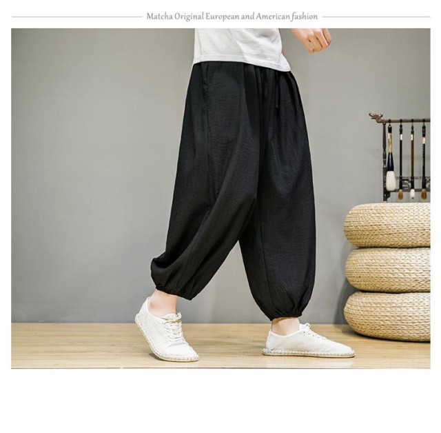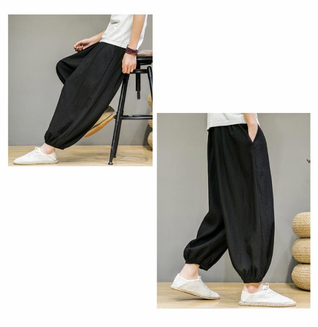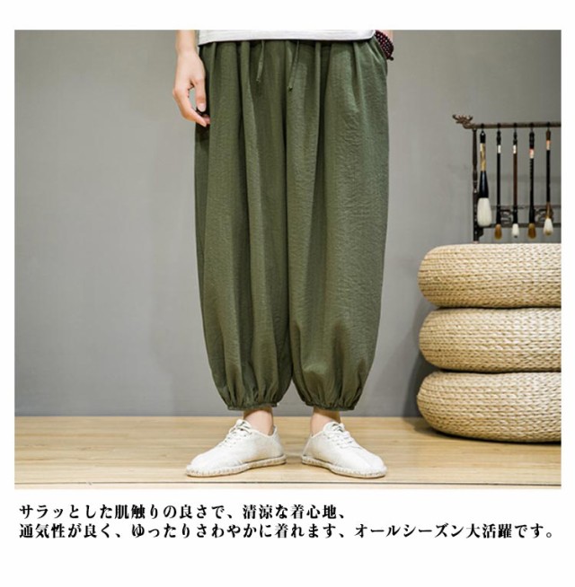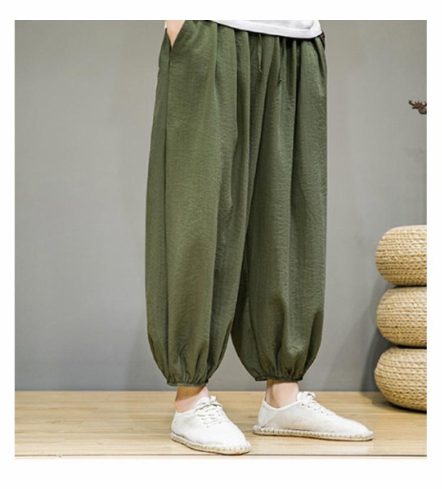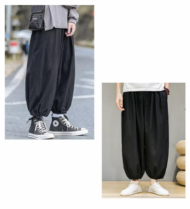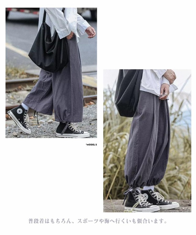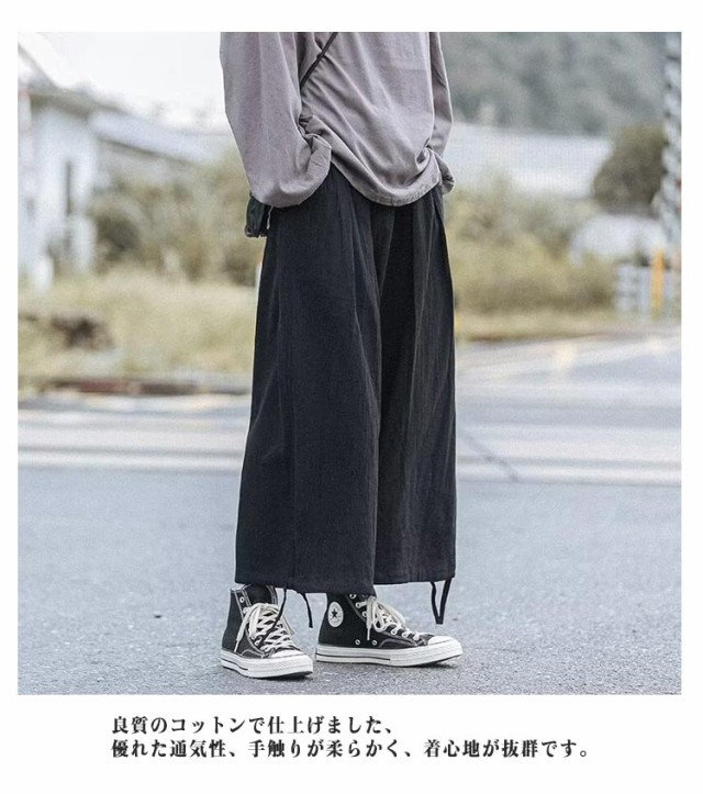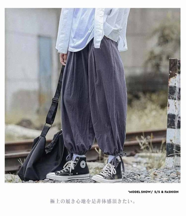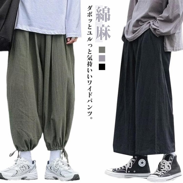 リラックスパンツ メンズ 夏 バルーンパンツ ゆったり モード系 太め スケーター 民族系 ストリート系 スト系 ワイドパンツ ワイドパンツ 春 綿麻 秋服 ダンス 普段着 原宿系 ビッグシルエット 無地 ワイド パンツ 袴パンツ