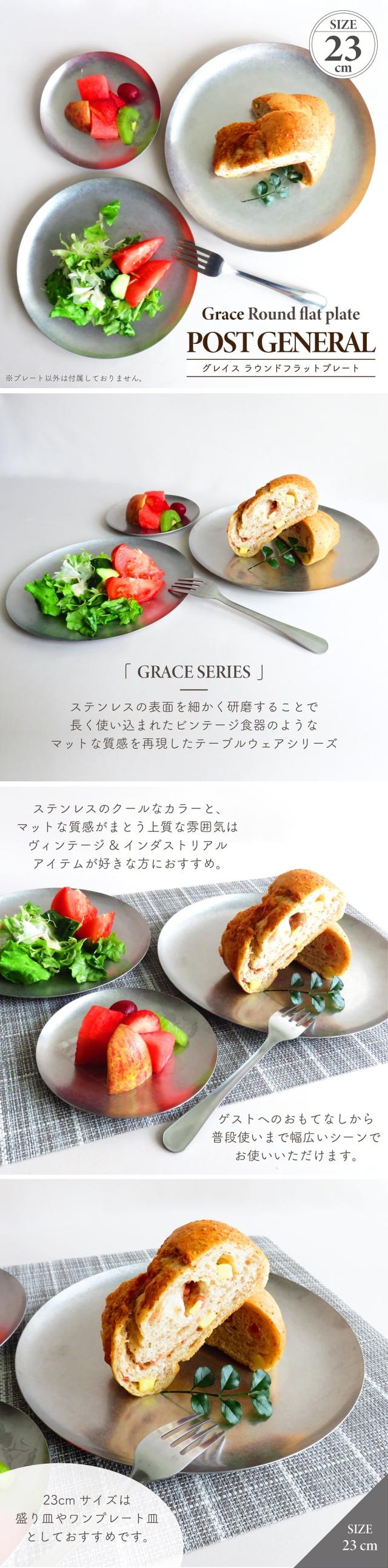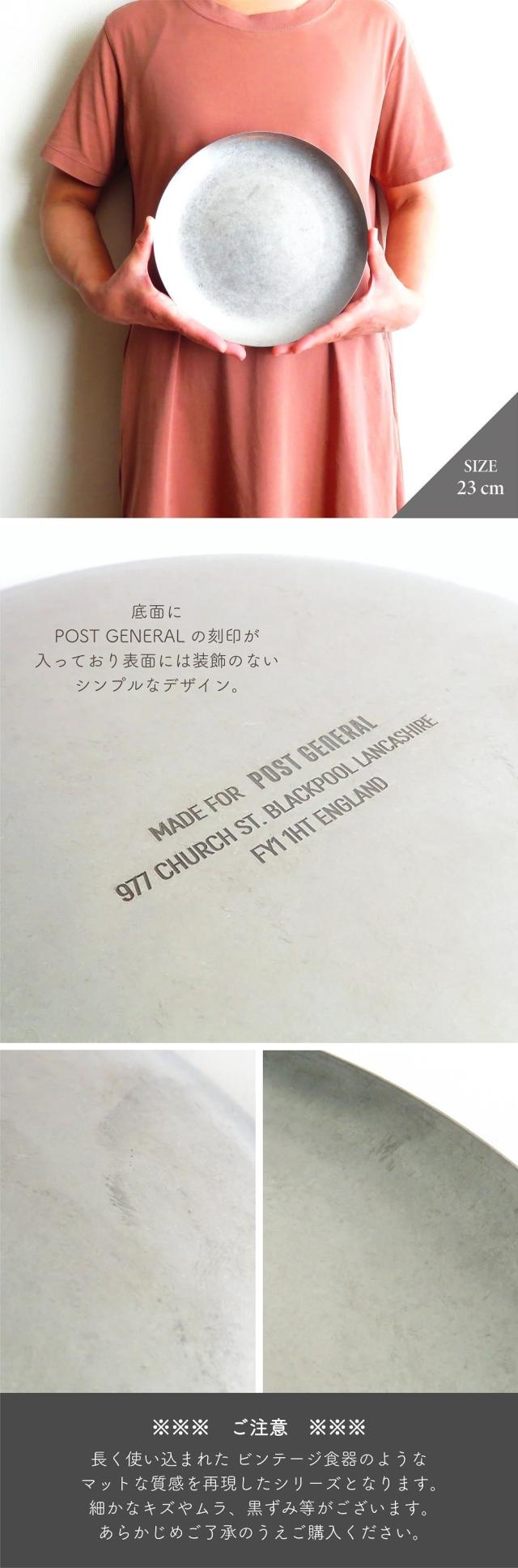 食器 プレート ポストジェネラル グレイス ラウンドフラットプレート 23cm ステンレス製 シルバー 食洗機使用可 皿 ランチ 軽食 盛り皿 ワンプレート インダストリアル 武骨 ヴィンテージ調 アンティーク調 インテリア