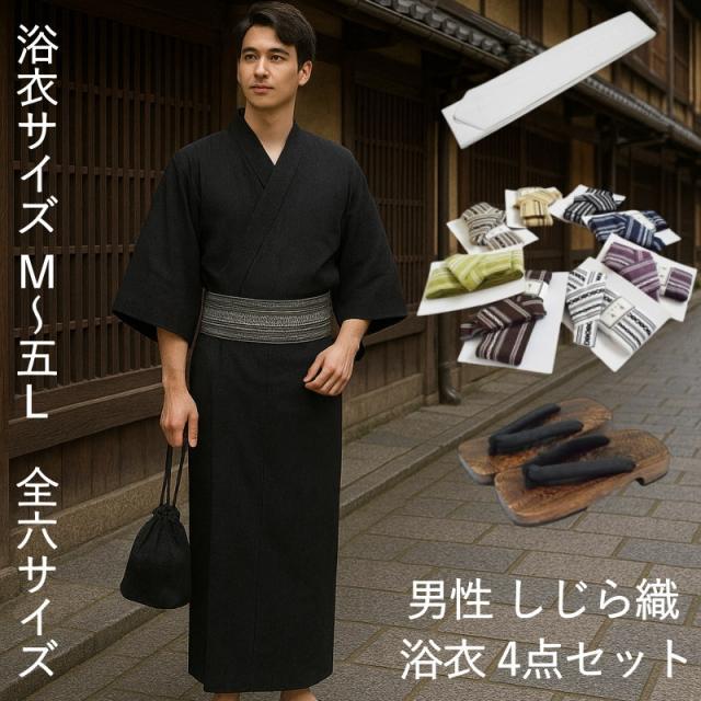 男性 しじら織 浴衣 4点セット 豪華4点セット【浴衣 M L LL 3L 4L 5L ・角帯・下駄 M〜3L・腰紐】しじら 綿麻 メンズ浴衣 男浴衣 男性 浴衣 大きいサイズ