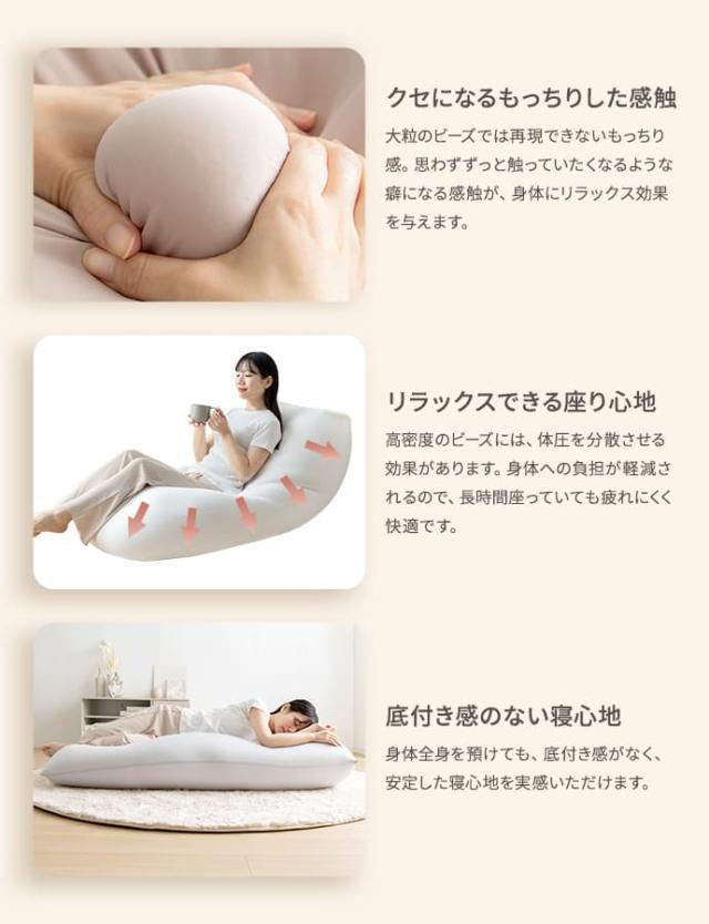 極小ビーズが体にぴったりフィットして、毎日のリラックスタイムを贅沢なくつろぎ時間に。