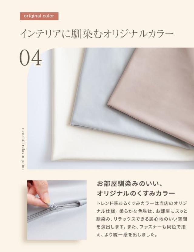 カバーは当店オリジナルのくすみカラーで、どんなインテリアにもなじみやすく、リビングや寝室にもしっくり。