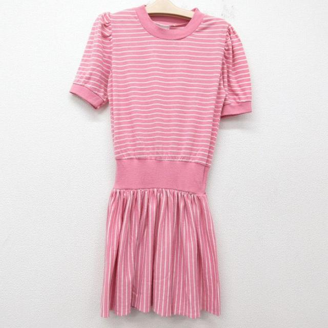 古着 半袖 ビンテージ ワンピース キッズ ガールズ 子供服 90年代 90s USA製 ピンク他 ボーダー 中古 古着