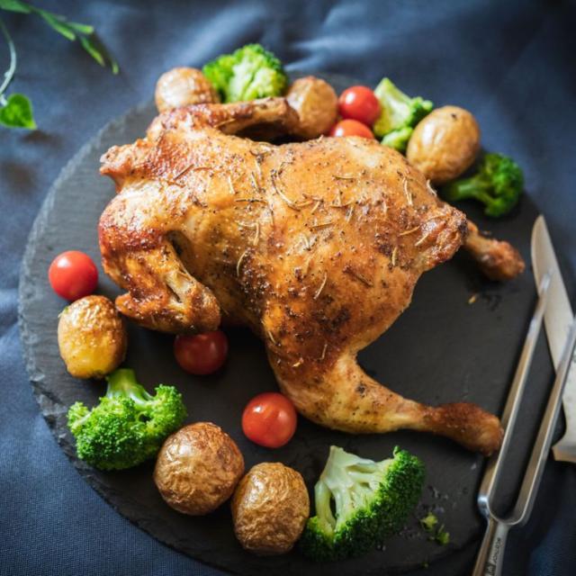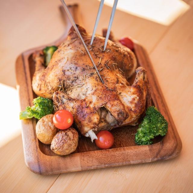 仕入れから出荷まで一切冷凍しないため、鶏肉本来の旨味やジューシーさを楽しめるローストチキンです。