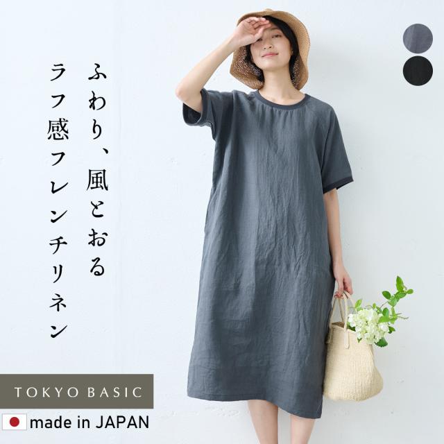 リネン ワンピース 半袖 ナチュラル 夏 日本製 フレンチリネン100% リブ使い ワンピース 40代 50代 60代 リゾート 膝丈 膝下丈 ミモレ丈 無地 体型カバー ゆったり シンプル カジュアル リネン100% 麻100% 麻 リネン 夏 ワンピ 速乾 抗菌 ワンピース レディース フレンチリネン ワンピ 涼しい 軽い クルーネック ラグランスリーブ カジュアル シンプル ブルー 青 ブラック 黒