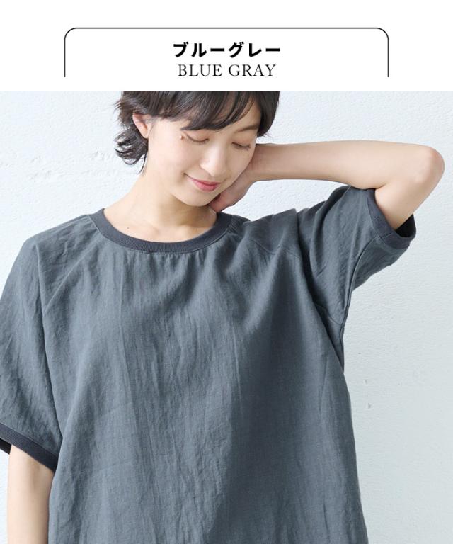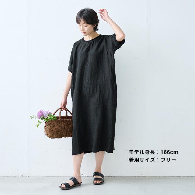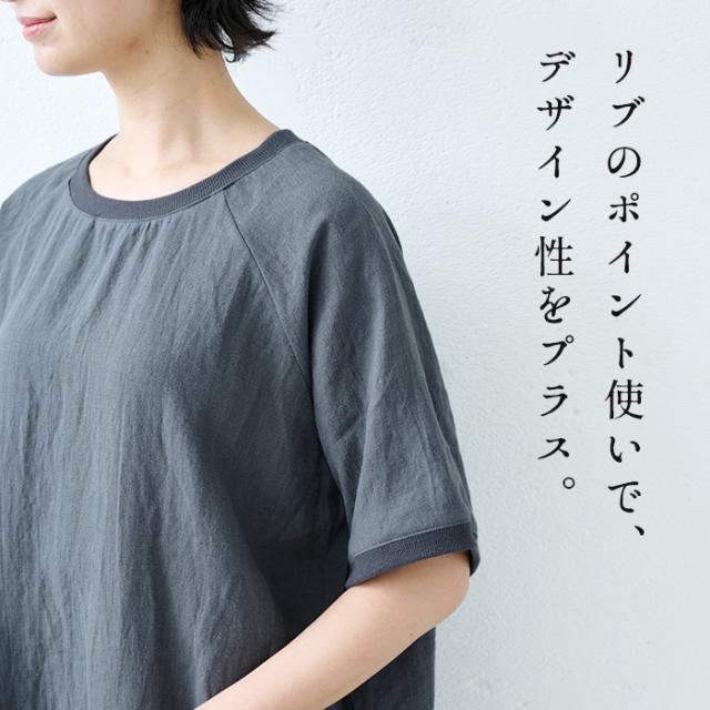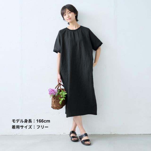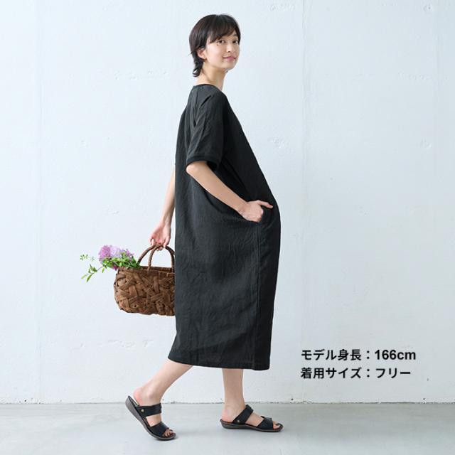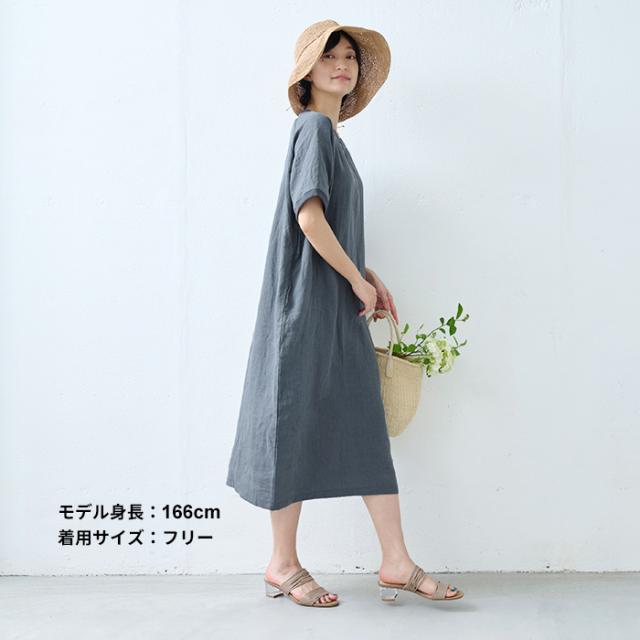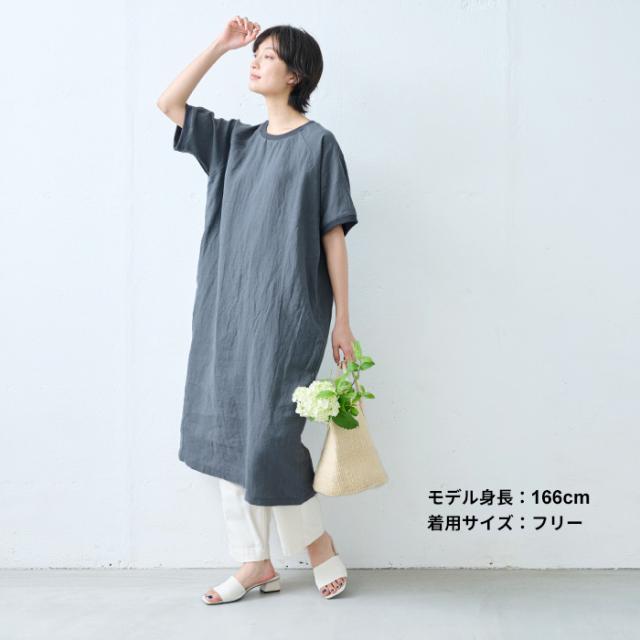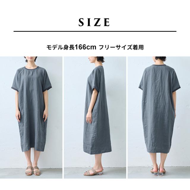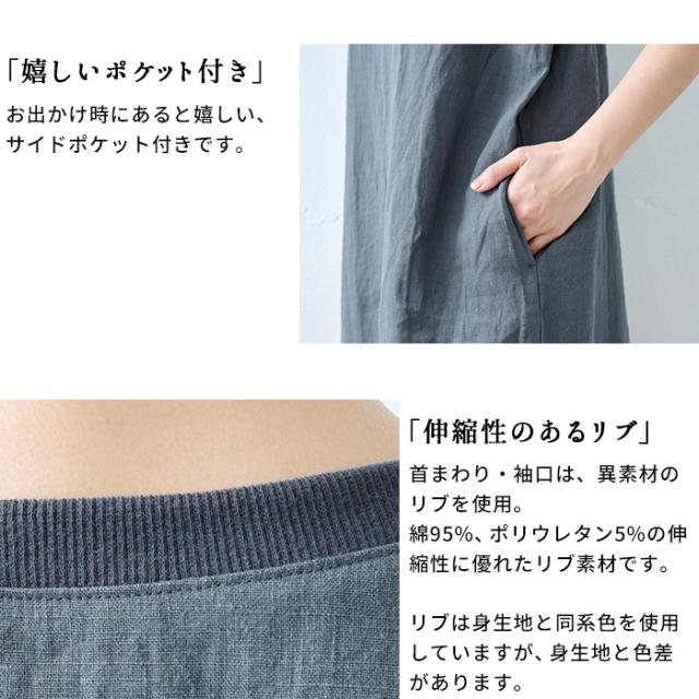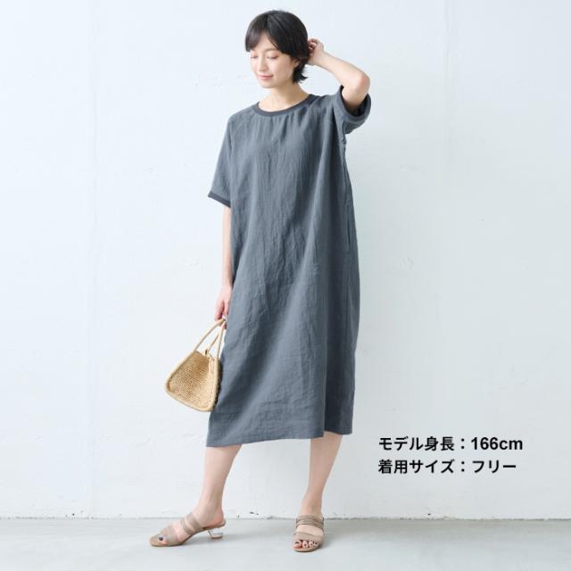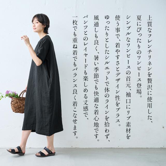 40番手 フレンチリネン100% リブ使い ワンピース 日本製 / リネン ワンピース 半袖 ナチュラル 夏 40代 50代 60代 リゾート 膝丈 膝下丈 ミモレ丈 無地 体型カバー ゆったり シンプル カジュアル リネン100% 麻100% 麻 リネン 夏 ワンピ 速乾 抗菌