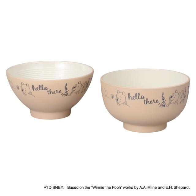 くまのプーさんとピグレットのデザインが可愛い食器セットです。使用頻度の高い汁わんと飯わんのセットで、ご飯や副菜の盛り付け、汁物などにも幅広くお使いいただけます。万が一落ちてしまっても割れにくいので、お子様やご年配の方にも扱いやすい器です。
