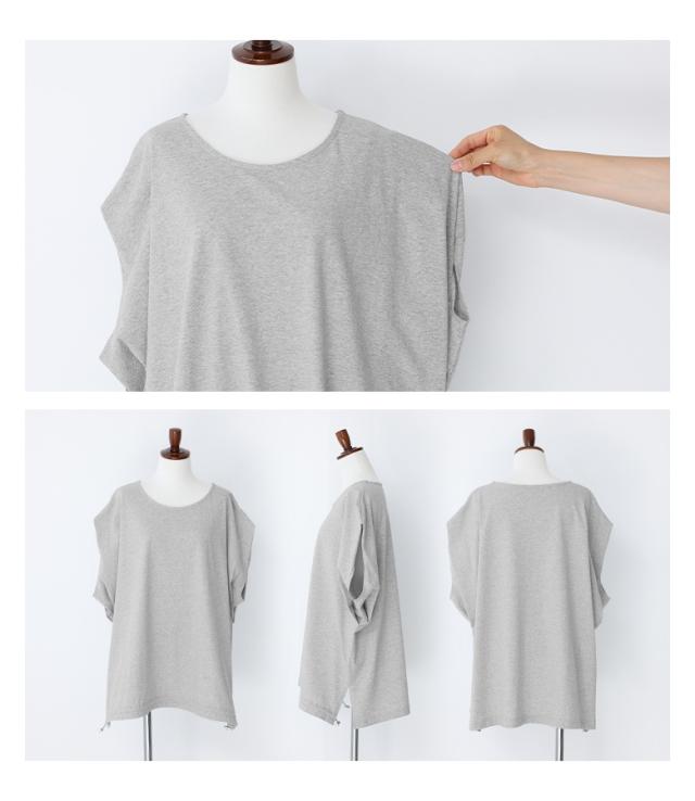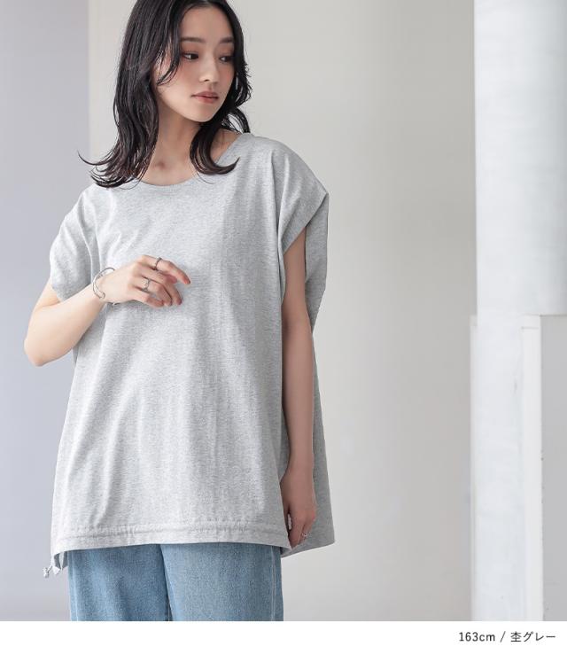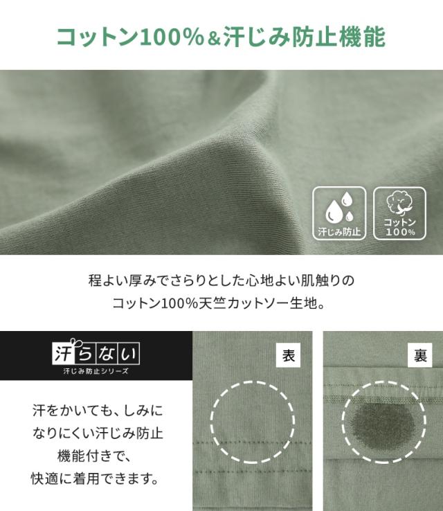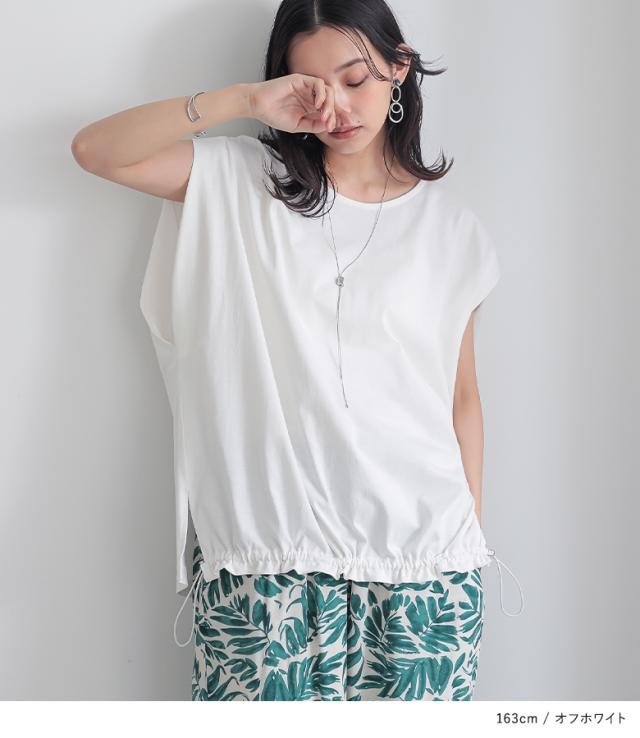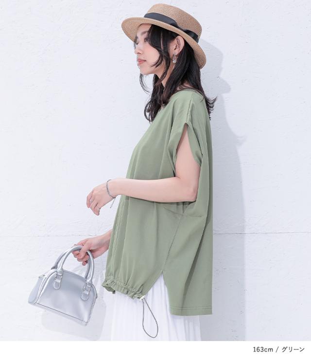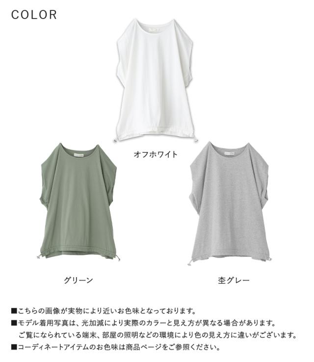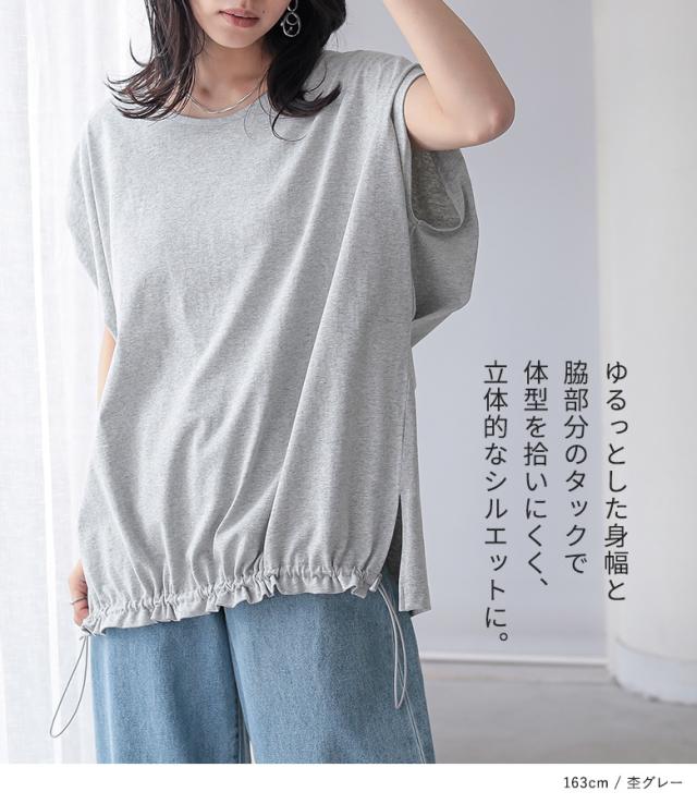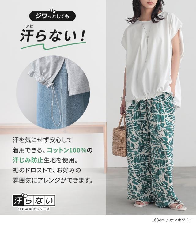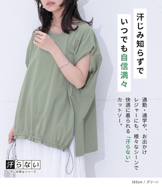 『汗じみ防止ドロストカットソー』※メール便可※【10】[Tシャツ レディース トップス 半袖 汗じみ防止 機能性 綿100% ドロスト Uネック ゆったり お尻が隠れる 春 夏]