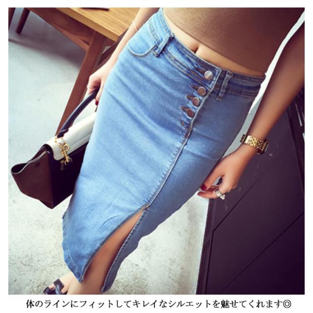 デニム タイトスカート スリット入り レディース デニム スカート 膝丈 タイト デニムスカート デニム ペンシルスカート Iライン送料無料