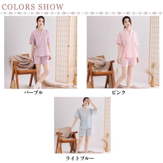 花火大会 寝巻き パジャマ 入院着 甚平 ダブルガーゼ 浴衣 部屋着 セットアップ じんべい 和服 着物 涼しい 綿 コットン パジャマ お祭り ルームウェア 上下セット 夏 秋 春 レディース 甚平 無地 半袖 短パン ルームウェア 上下セット 入院 介護