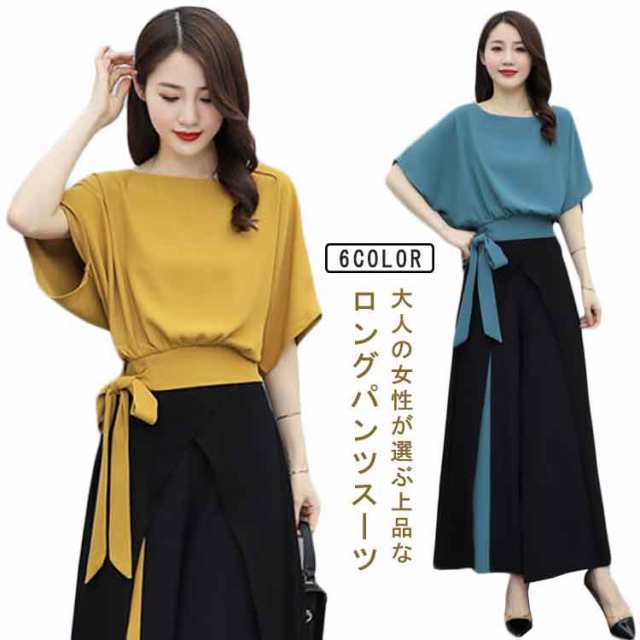 セットアップ 上下セット きれいめ レディース ワイトパンツ 夏 半袖 ハイウエスト 春 セットアップ 美脚 カジュアル 大きいサイズ ガウチョパンツ おしゃれ 無地 ブラウス パンツ 通勤 OL トップス ボトムス 着痩せ ロング丈 体型カバー 婦人 30代 40代 50代 ギフト