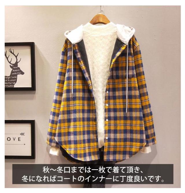 シャツパーカー フード付きシャツ シャツコート シャツジャケット レディース アウター ロングシャツ ネルシャツ オーバーサイズ 秋服 秋物 ゆったり 体型カバー チェック柄 大きサイズ 送料無料