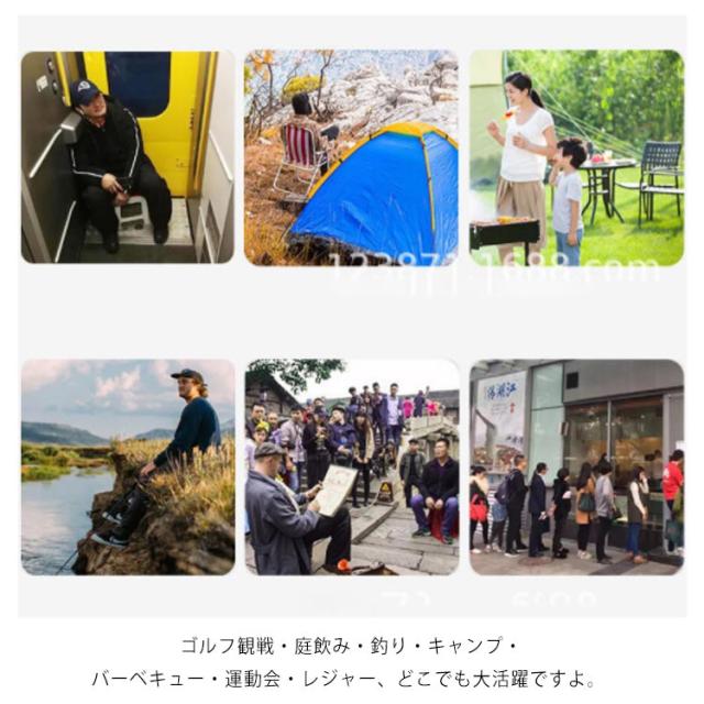 | 伸縮式で高度自由調節ができて持ち運びも簡単! 簡単で素早く開閉でき、高度自由調節アウトドアチェアです。 展開する前にはまるいバックの形で、全然チェアの様子に見えないです。 展開する後は高度46cmの椅子になり、更に好きな高度を選択して回転して調節できます。面白くて、携帯も収納も便利です! 操作簡単で携帯便利 使用する時ただ指を両面の穴にさして開くだけ、縮める時は逆方法に少しひねりを入れながら両端を押すだけで一瞬で収納可能です。 ショルダータイプに持ち運ぶ時は、チェアの側に回るロップがあるので肩にかけ持ち運べるから本当に便利です。 また重量は0.88kgで軽量です。 頑丈な素材ポリアミドで耐荷重100kgまでOK! ゴルフ観戦・庭飲み・釣り・キャンプ・バーベキュー・運動会・レジャー、どこでも大活躍ですよ。 | |