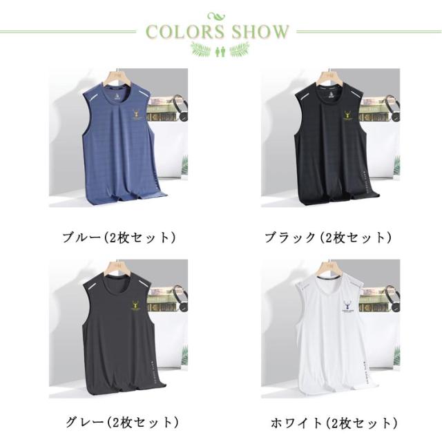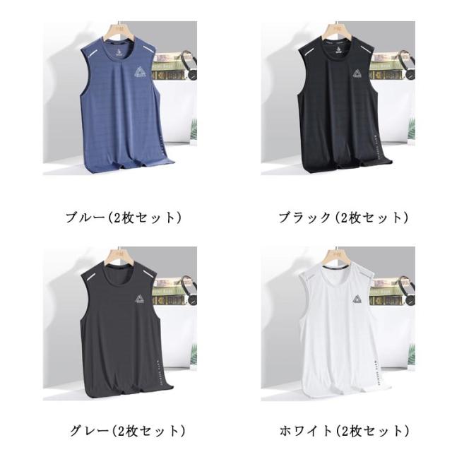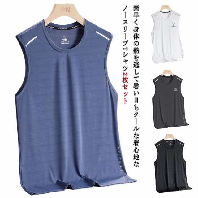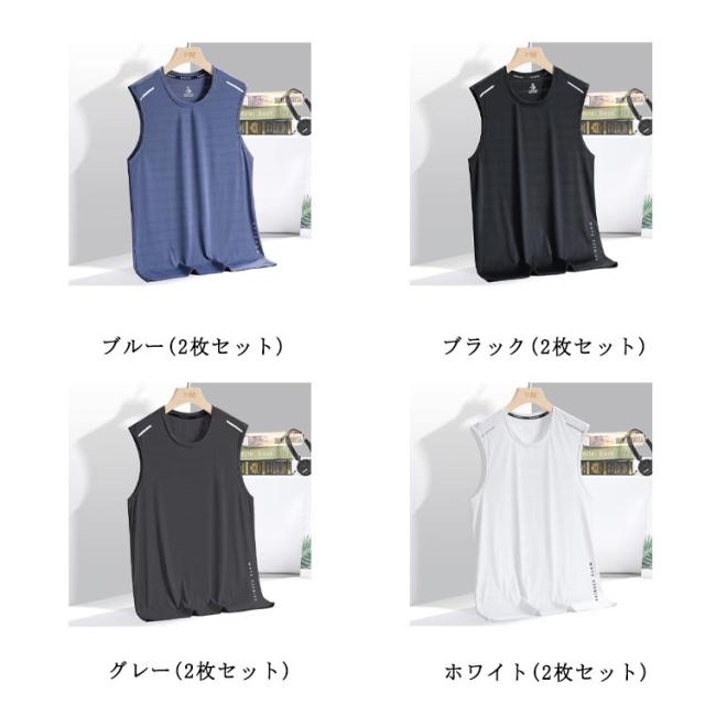 2枚セット 接触冷感 タンクトップ メンズ ノースリーブ Tシャツ 薄手 夏 メッシュ ドライ 吸汗速乾 涼しい 袖なしTシャツ 無地 スポーツウェア 運動着 ジム フィットネス トップス 大きいサイズ 夏服 ランニング トレーニングウェア 筋トレ 運動会 体育祭 作業着 送料無料