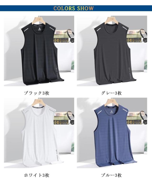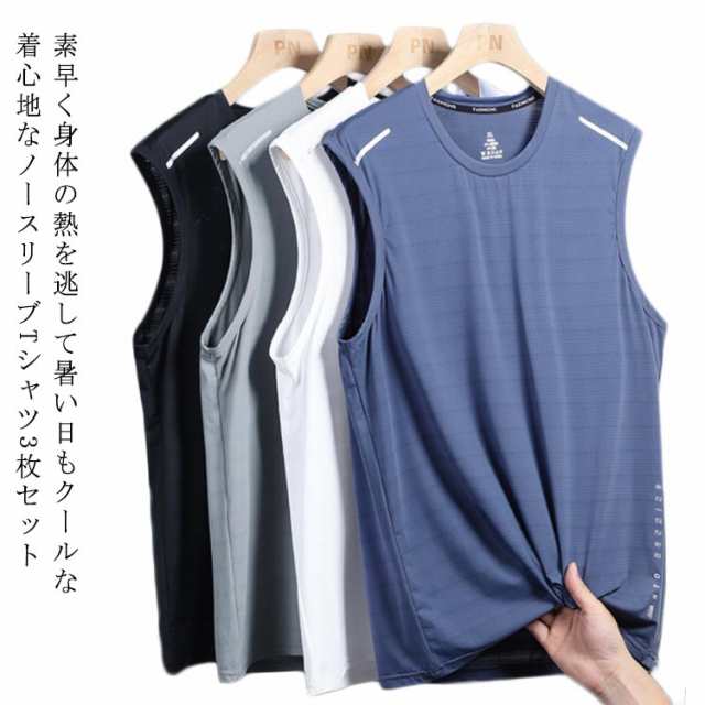 タンクトップ Tシャツ ドライ メンズ ノースリーブ 吸汗速乾 薄手 無地 接触冷感 夏 メッシュ 涼しい 袖なしTシャツ ジム スポーツウェア 運動着 フィットネス 3枚セット トップス 大きいサイズ 夏服 ランニング トレーニングウェア 筋トレ 運動会 体育祭 作業着