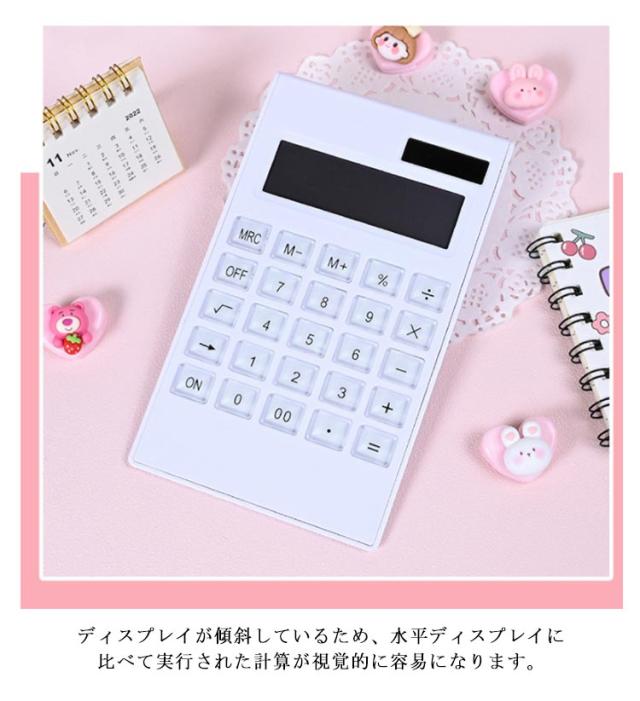 電卓 太陽電池 デスク用品 12桁 カラフル電卓 計算機 事務用品 オフィス用品 計算 オフィス 文房具 電卓 12桁 12ケタ 卓上 仕事 ステーショナリー デスク 事務 おしゃれ かわいい シンプル 白 ホワイト