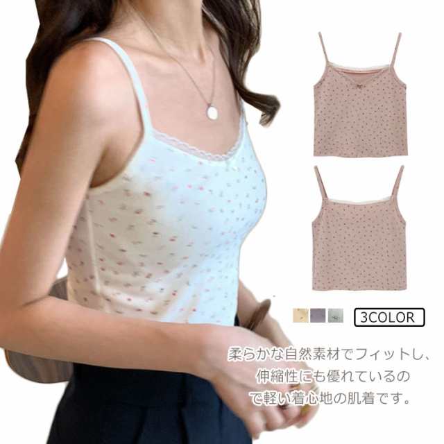 2個セット キャミソール タンクトップ レース インナー レディース タイトキャミソール Vネック シンプル トップス カットソー トレンド 春夏 ショート丈 短い 韓国ファッション