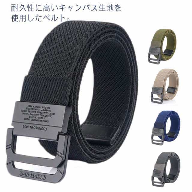 ベルト メンズ キャンバス ダブルリング 穴なし 調整可能 カジュアル アウトドア 登山 作業 学生 スポーツ レディース ストレッチ 軽量 無地 38mm シンプル メタルバックル 合金 送料無料