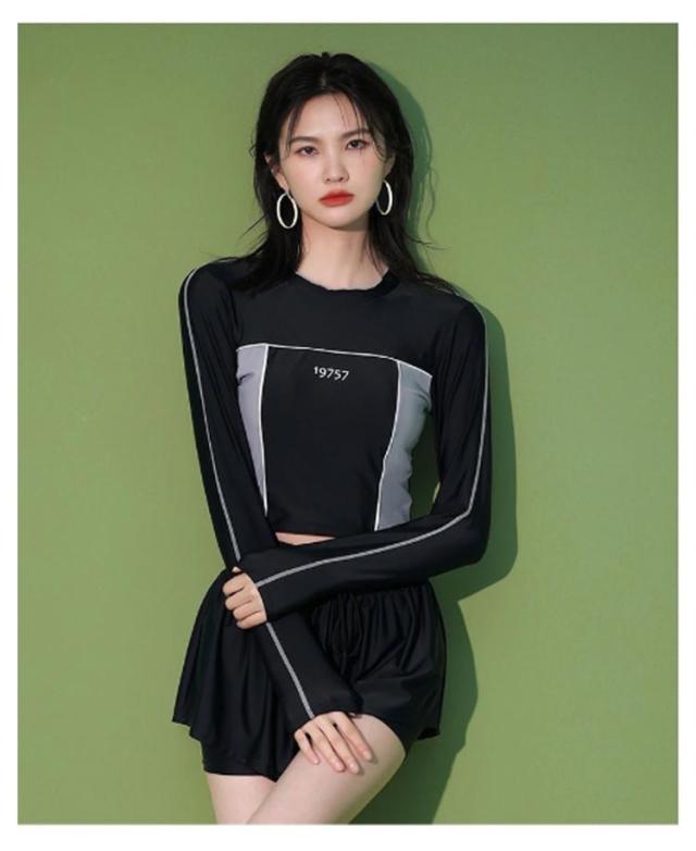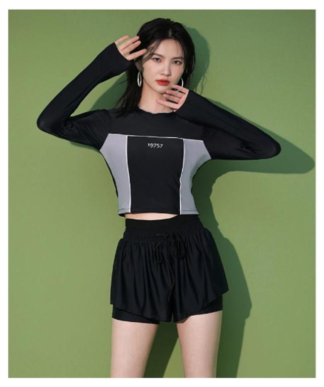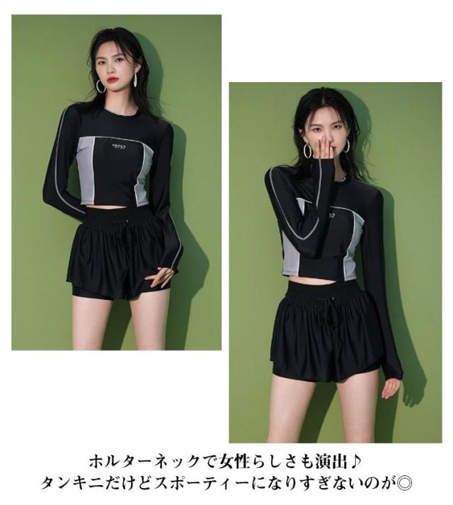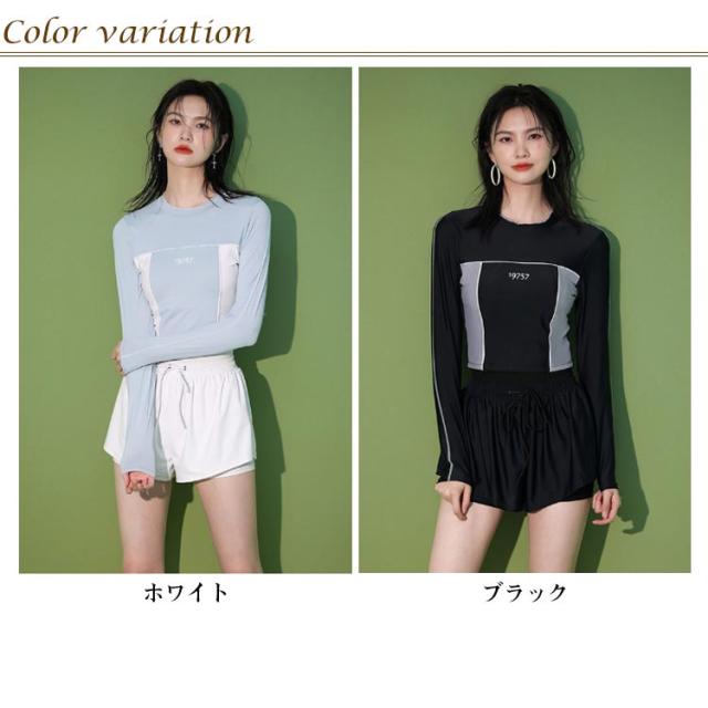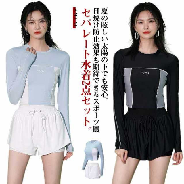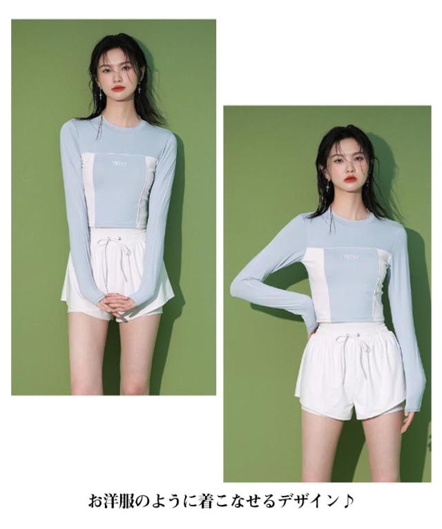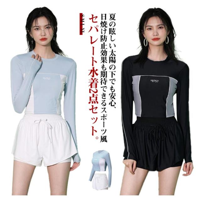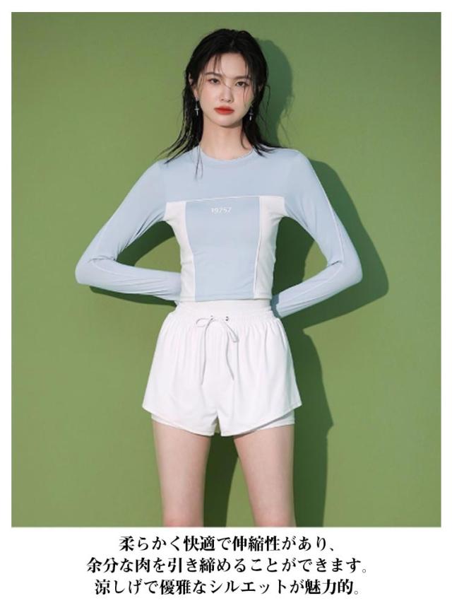 競泳水着 水着 レディース 2点セット フィットネス水着 UVカット おしゃれ 長袖 ショートパンツ付き 体型カバー 中学生 高校生 大学生 スポーツウェア 日焼け防止 夏 水着 スクール水着 セパレート ビーチ プール 運動用