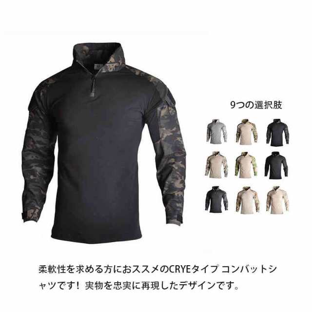 CRYEタイプ 長袖 コンバットシャツ 9色 マルチカム マンドレイク タイフォン COMBATタイプ タクティカル Tシャツ 伸縮性 速乾 迷彩服 サバゲー 装備 サバイバルゲーム メンズ ミリタリーシャツ BDU 服 服装 春 秋 夏 冬