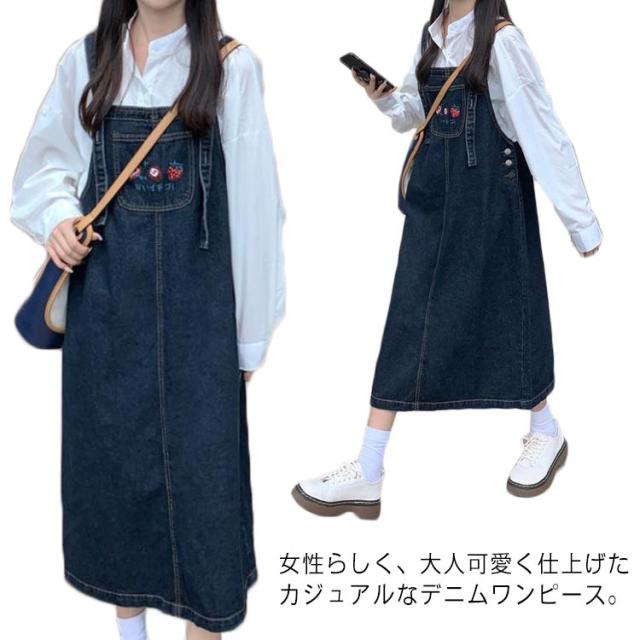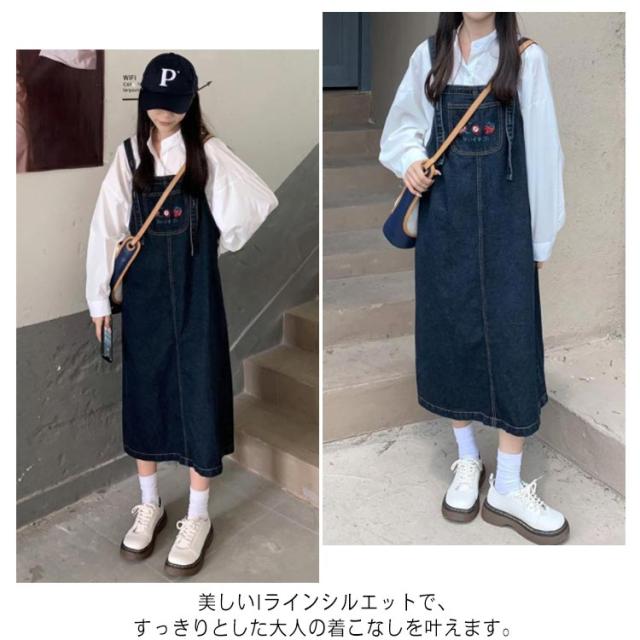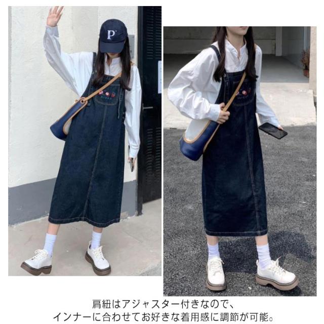 キャミワンピース レディース 低身長 刺繍 ジャンパースカート サロペットスカート オールインワン ロング丈 スリット入り ノースリーブ お洒落 ゆったり 重ね着 可愛い 春 秋 ワンピース キャミソール 送料無料