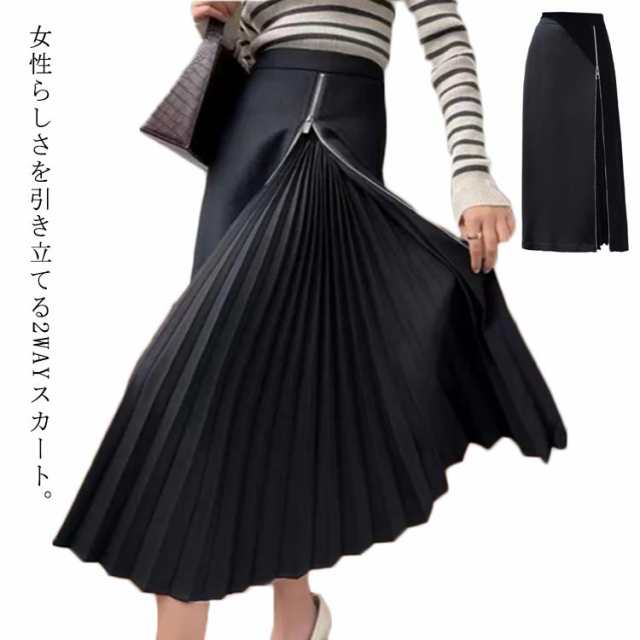 2WAYスカート サイドジップ プリーツスカート ストレートスカート タイトスカート ロング丈 スカート スリットスカート アシンメトリー おしゃれ 大きいサイズ 体型カバー L XL 2XL 3XL 4XL
