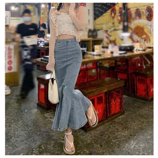 | 女性らしい美シルエットを演出♪ハイウエストマーメイドデニムスカート。 タイトなデザインでお腹周りがスッキリ&ヒップアップ効果抜群、足を長く見せるのが魅力。 華やかな印象をプラスするマーメイドライン、女性らしいシルエットに。 フロントスリット入りで、スラリと足を見せて、セクシーなスタイル。 ショート丈のトップスやゆったりしたトップスなどと合わせやすいロングデニムスカート。 ストレッチのあるデニム生地で、フィットしながら、窮屈感なく快適。 | |