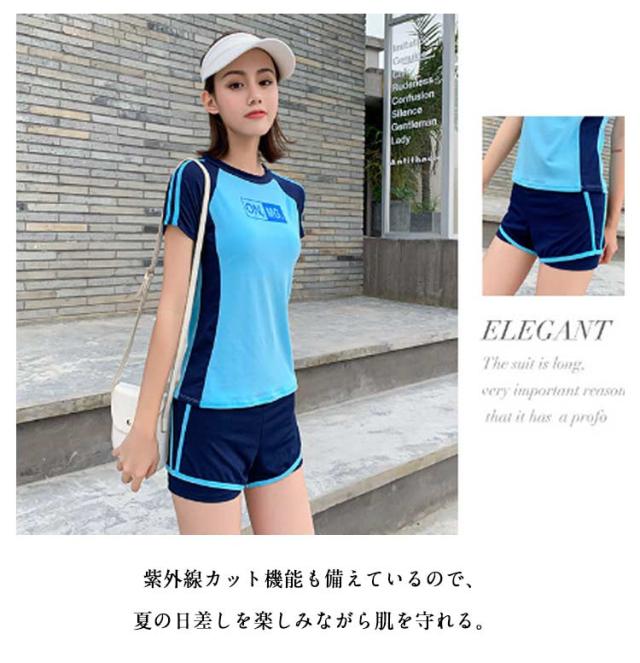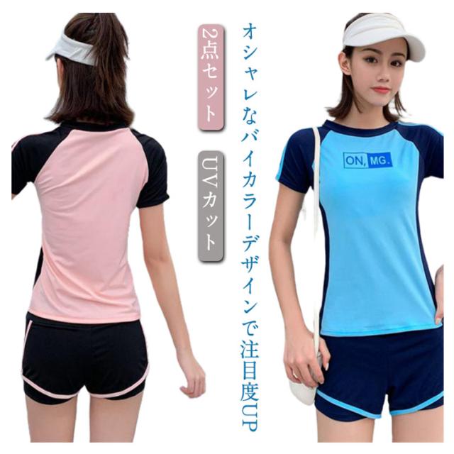 胸パッド付き 2点セット 体型カバー フィットネス ビーチ 大学生 おしゃれ 高校生 夏 ママ水着 可愛い スクール水着 セパレート 水着 中学生 水着 女性 S-XL 女の子 30代 小胸 日焼け防止