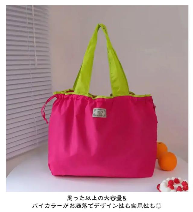 トートバッグ メンズ ショッピングバッグ 買い物バッグ 開口部は巾着タイプ 無地 大容量 折りたたみ レジバッグ レディース おしゃれ コンパクト エコバッグ 巾着型エコバッグ エコバッグ レトート 軽量 男女兼用 バイカラー コンビニ かわいい 生活雑貨