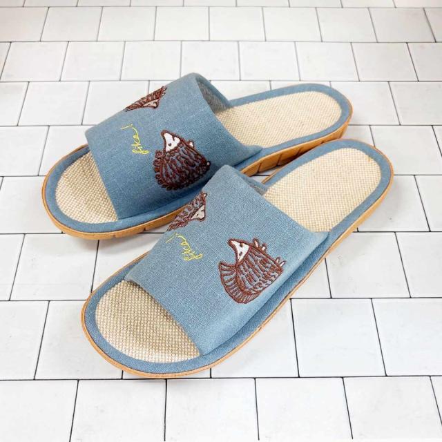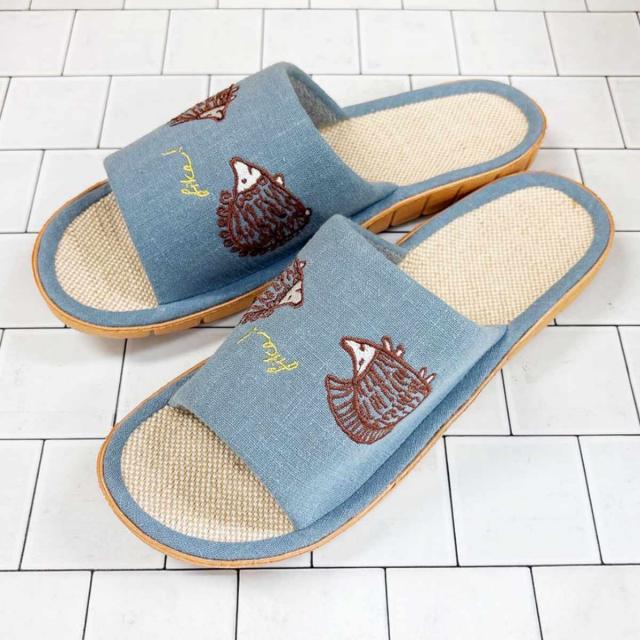 スリッパ リサ・ラーソン はりねずみルームサンダル L 約23.5〜24.5cm ( 室内 レディース 夏用 リサラーソン ハリネズミ 雑貨 前開き 麻 綿 EVA ルームスリッパ トイレ インテリア雑貨 自宅 室内用 静音 北欧 )