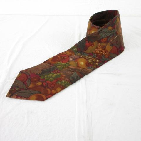 【中古】TK GOODS ネクタイ 総柄 フルーツ柄 シルク 茶 *T290 メンズ