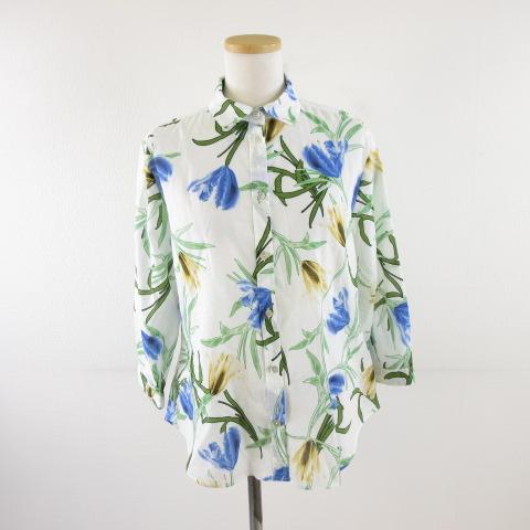 【中古】ヴェッツォ VEZZO シャツ 七分袖 花柄 白 緑 M *A108 レディース