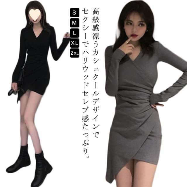 | 高級感漂うカシュクールデザインでセクシーでハリウッドセレブ感たっぷり。 生地はストレッチが効き、優雅なドレープが女性の丸みを立体的に包み込みます。 無地のソリッドカラーでオフィスやパーティーシーンや二次会やお呼ばれに。 アシンメトリーデザインで細身で脚長効果。セクシーなボディコンスタイルでスタイリッシュできれいめ。 上にジャケットやカーディガンなどコーディネートし易い!長袖で春夏秋まで着回しができる一枚。 | |
