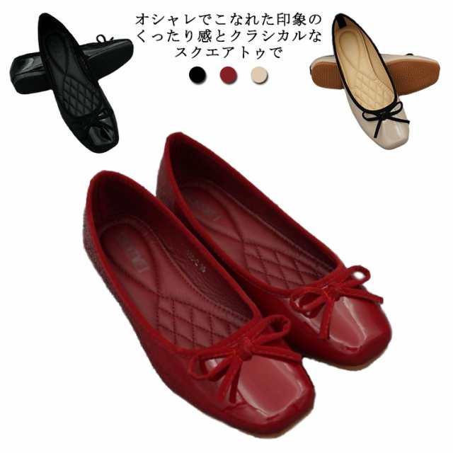 スクエアトゥ バレエシューズ レディース リボン パンプス 痛くない ぺたんこ フラットシューズ バレエパンプス フラットヒール ローヒール 歩きやすい 大きいサイズ 通勤 アウトレットシューズ