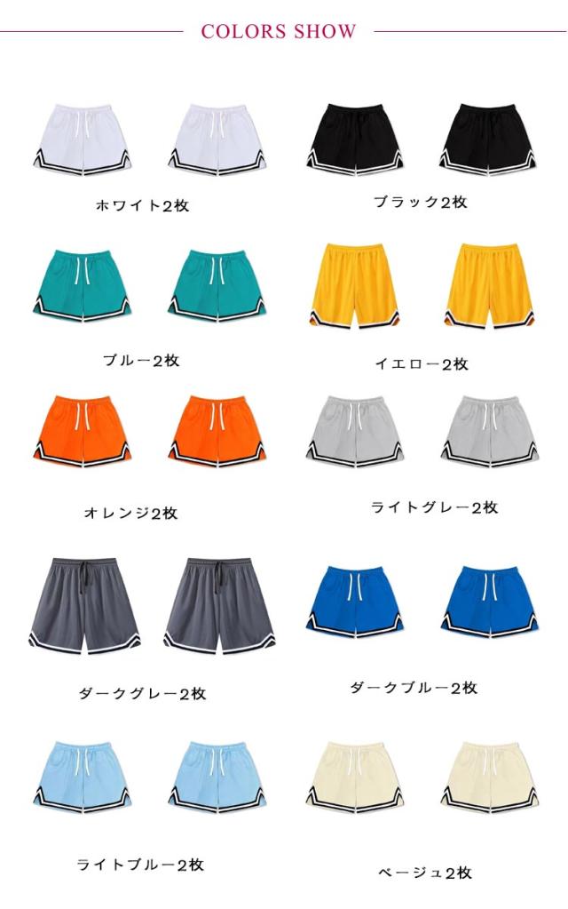 | 速乾・涼感 バスケパンツが登場!2枚セット! ハーフパンツは高い吸水速乾性を持つドライメッシュ生地を使用。 さらりとした質感の気持ちよい履き心地、汗による肌のべたつきを軽減し、運動中の身体も快適でドライな状態にします。 ウエストは総ゴム仕上げなので着脱しやすいのがポイント。 ランニング、旅行、ジム、フィットネス、アウトドア、スポーツ、部屋着、普段着としてあらゆるシーンに活用できる! | |