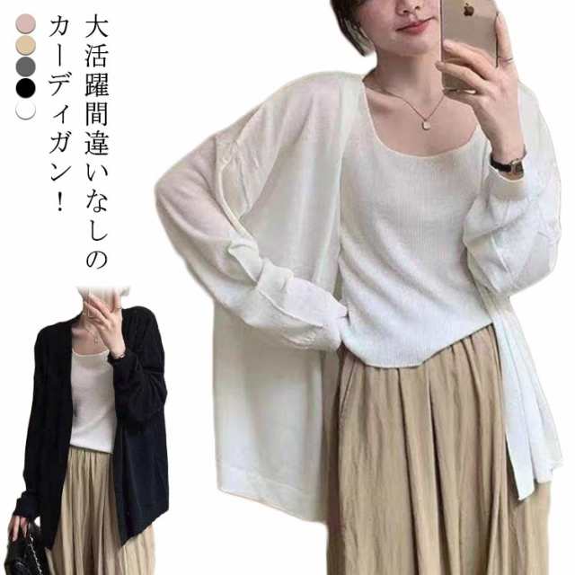 ロング丈 カーディガン ニットカーディガン 夏 トップス ニット 春 UVカット ニットカーディガン 冷房対策 薄手 紫外線対策 長袖 Vネック 日焼け防止 サマーニット カーデ 洗える 長め丈 羽織り 無地 シンプル ゆったり 体型カバー 学生 オフィス 通勤 黒 おしゃれ
