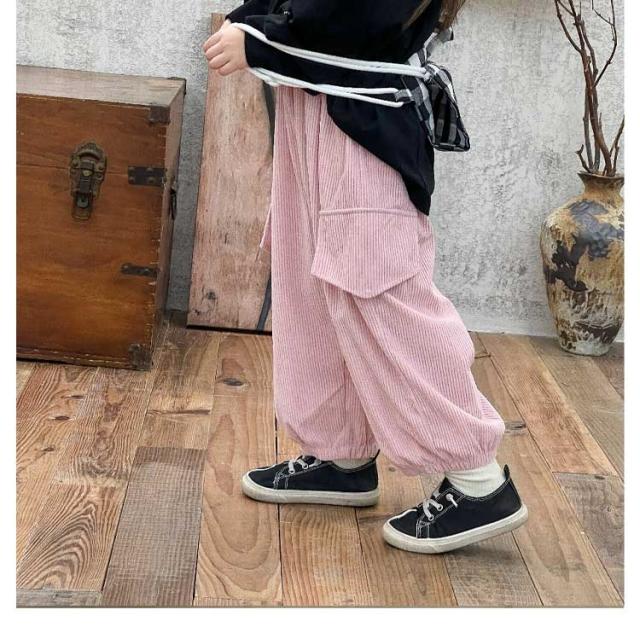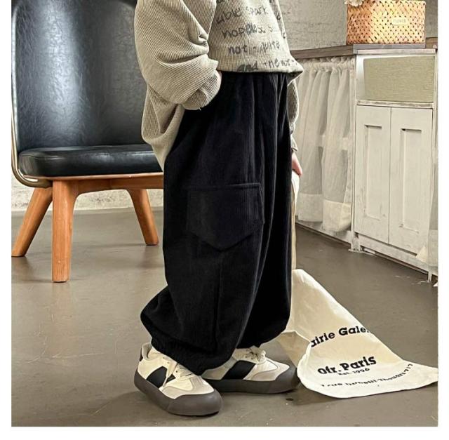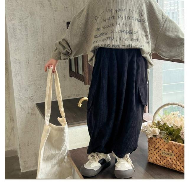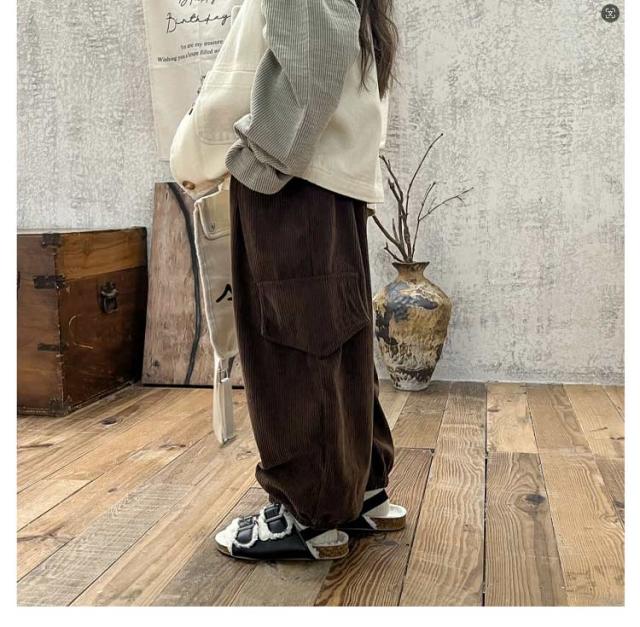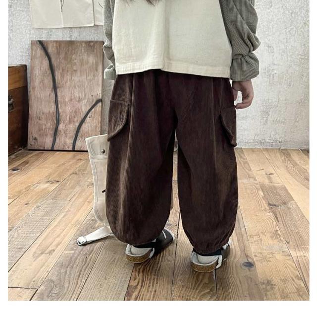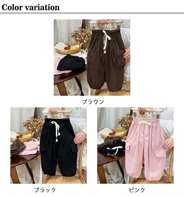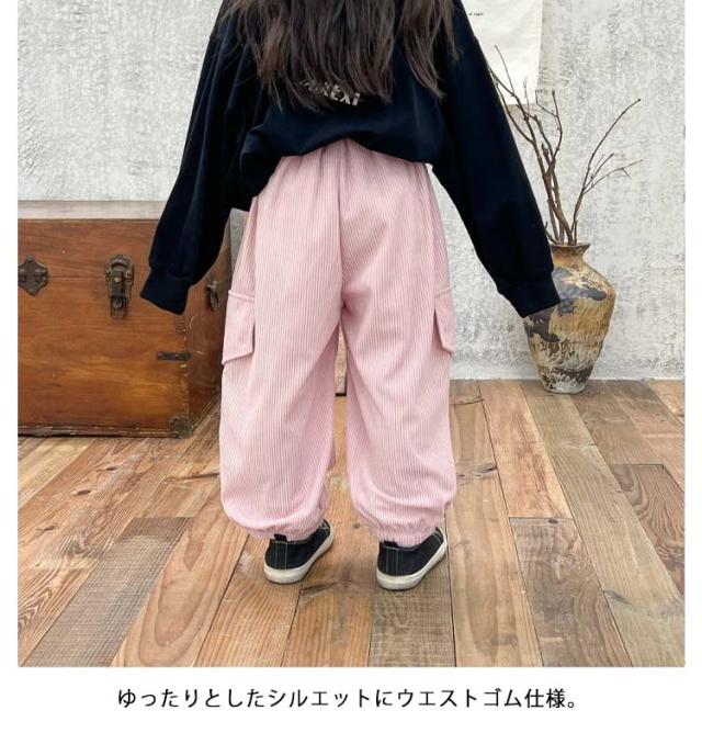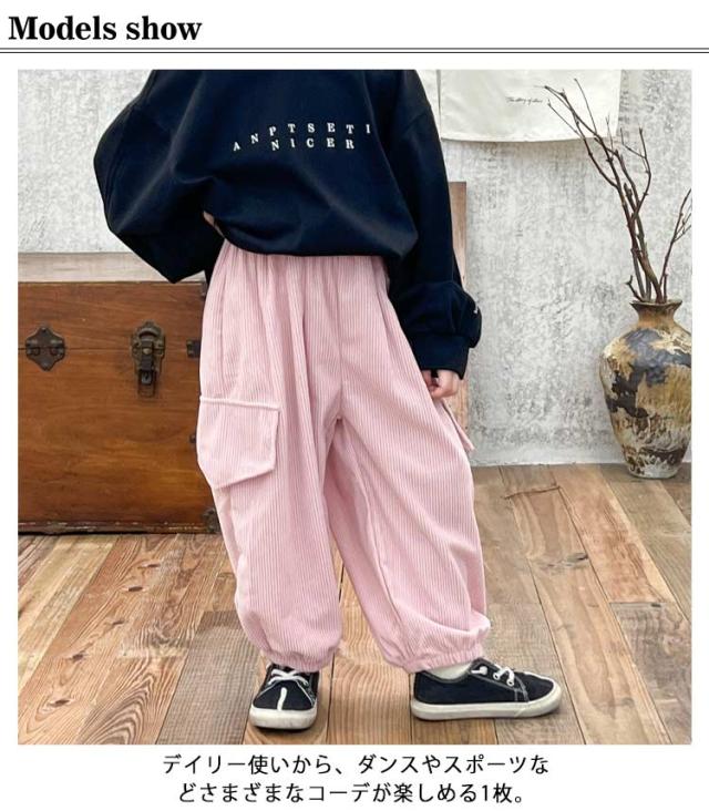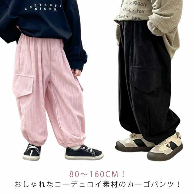 | 80?160cm!おしゃれなコーデュロイ素材のカーゴパンツ! ゆったりとしたシルエットにウエストゴム仕様。 デイリー使いから、ダンスやスポーツなどさまざまなコーデが楽しめる1枚。 | |