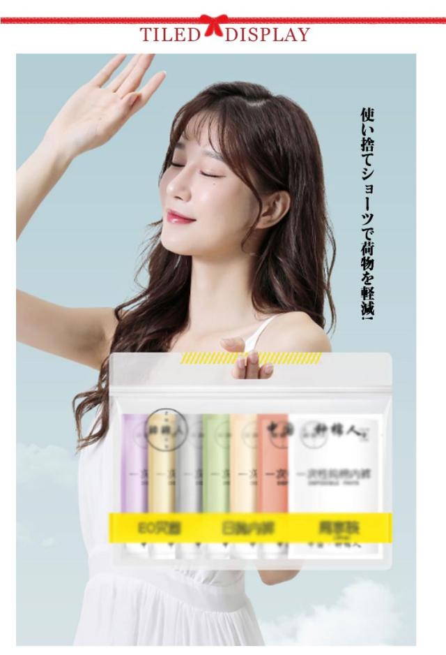 | 使い捨てショーツで荷物を軽減! 綿100%だからはき心地も快適。 海外、国内旅行の他、スポーツやレジャーにも。 柔らかくて、通気性あり。個別包装は衛生的です。 洗濯して繰り返し使用もできます。 | |