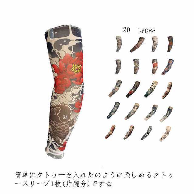 タトゥースリーブ 刺青 入れ墨 アームカバー デザイン タトゥー アームウォーマー 仮装 コスプレ オシャレ メンズ レディース 紫外線カット UV対策 紫外線対策 日焼け対策 簡単着脱