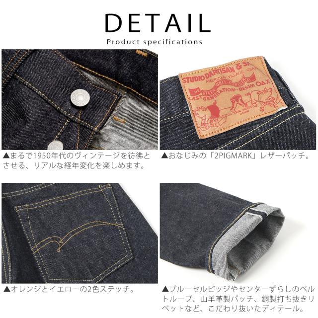 ■ ステュディオ・ダルチザン STUDIO D'ARTISAN 商品詳細 【STUDIO D’ARTISAN ステュディオ・ダ・ルチザン】15oz リラックステーパードジーンズ SD-108|メンズジーンズ デニムパンツ 日本製 セルビッチ 老舗ジャパンデニムブランド【STUDIO D’ARTISAN(ステュディオ・ダ・ルチザン)】から、定番人気モデルsd-108をベースに、より快適な穿き心地を追求したリラックステーパードジーンズ「SD-108」が登場。 現代のライフスタイルに寄り添うシルエット設計で、深めの股上・程よくゆとりのある太もも周り・すっきりした裾幅という絶妙なバランスが魅力。 細身ながらもストレスの少ない穿き心地で、デニム愛好家から普段使いの一本を探している方まで、幅広く支持されている人気アイテムです。 素材には、旧式力織機で丁寧に織られた15オンスのセルビッチデニムを使用。 生機(キバタ)と呼ばれる未加工の状態にこだわることで、穿き込むほどに現れる自然な色落ち・アタリ・ねじれ感など、1950年代のヴィンテージジーンズのような風合いを存分に味わえます。 防縮加工などの現代的な工程をあえて施さず、ジーンズ本来の育てる楽しさを提供する一本に仕上がっています。 裾に向かって自然に細くなるテーパードラインは、カジュアルにもきれいめにも合わせやすく、スニーカーやブーツ、革靴との相性も抜群。 シャツやカットソー、ジャケットなど、幅広いトップスとのコーディネートに対応し、オールシーズン活躍できるデニムパンツです。 |