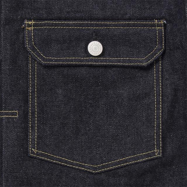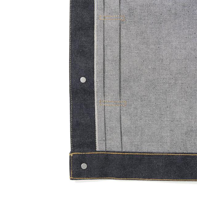 旧式のシャトル織機によって織られたこの生地は、しっかりとした厚みと着応えのある質感、そして色落ちの濃淡がくっきりと出るのが特徴。硬めの生地は着込むほどに体になじみ、ヒゲやアタリも美しく育ちます。