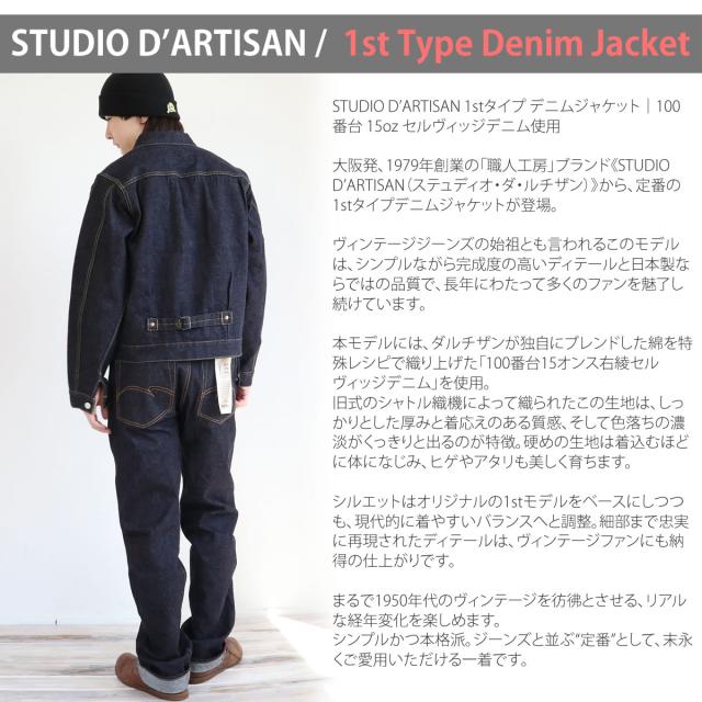 【 日本製 】ステュディオ・ダルチザン STUDIO DARTISAN 1stタイプデニムジャケット Gジャン アウター ( SD-411 ) ステュディオ・ダ・ルチザン メンズ Gジャン ファースト ジージャン インディゴセルビッチ メンズ アーベン