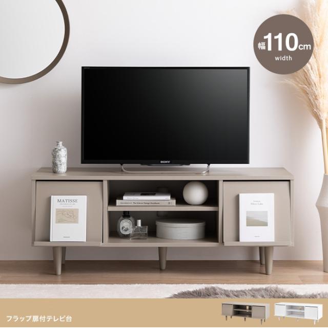 テレビ台 テレビボード CARU 110cm幅 組み立て品 ホワイト色 グレージュ色 フラップ扉 ローボード ロータイプテレビ台 北欧 ECRF