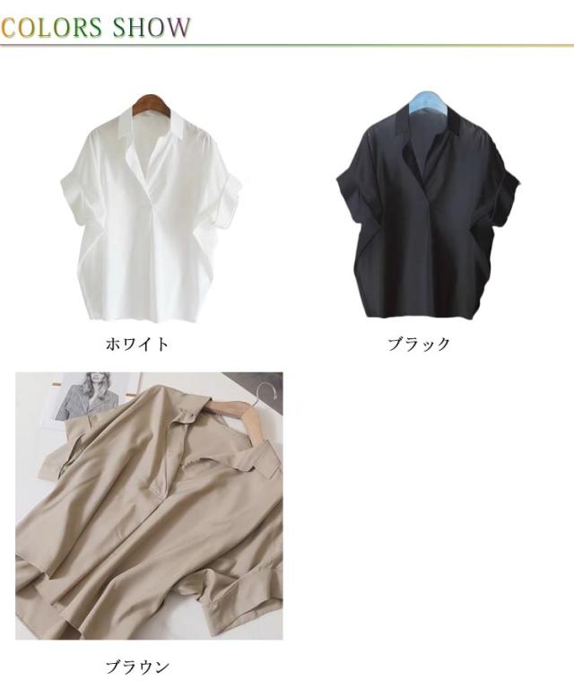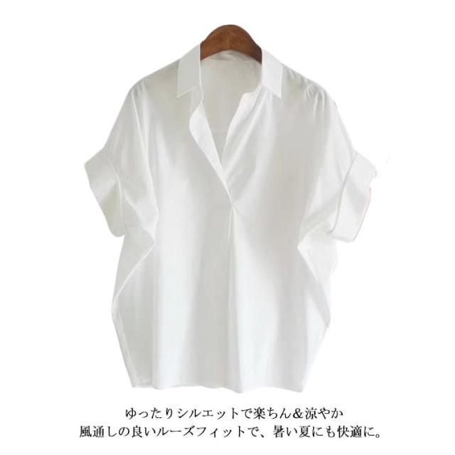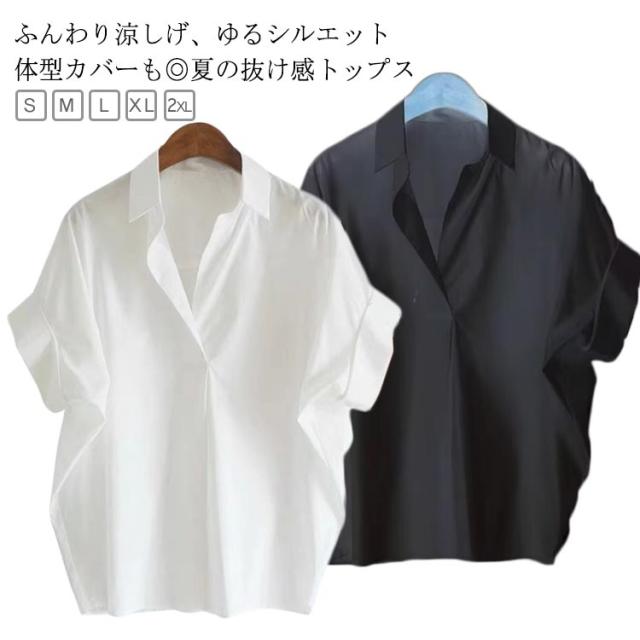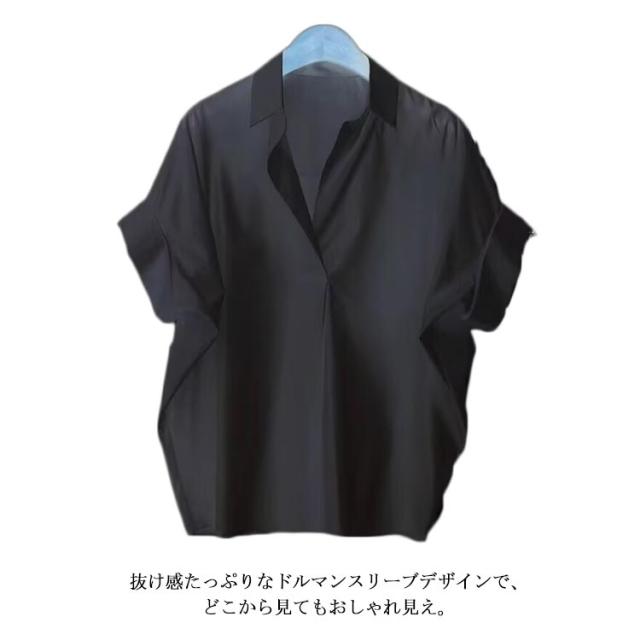 シャツ 半袖 夏 ブラウス ゆったり 体型カバー レディース ドルマン袖 トップス スキッパーシャツ カジュアル おしゃれ 無地 着回し 送料無料