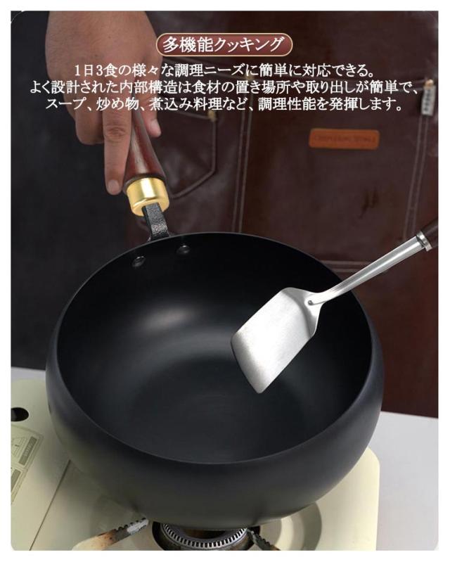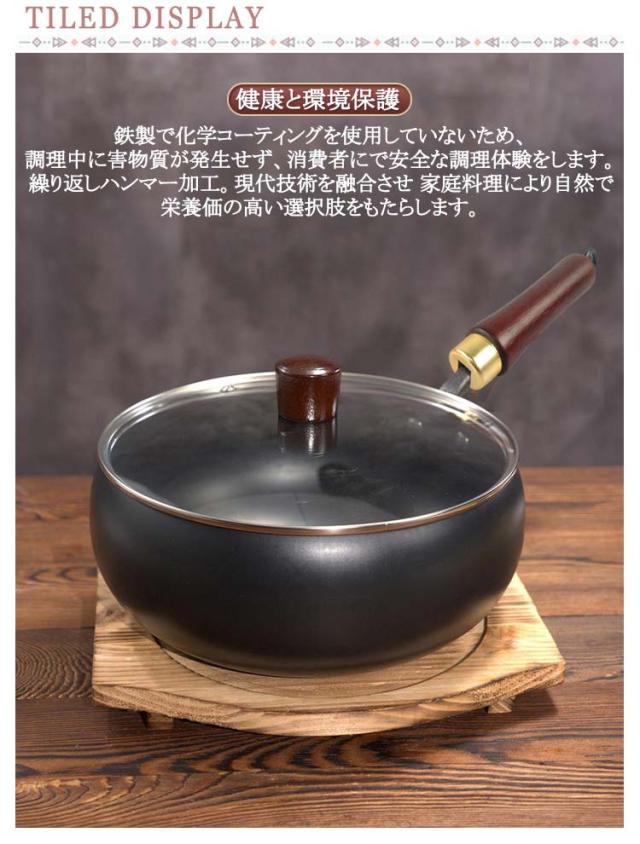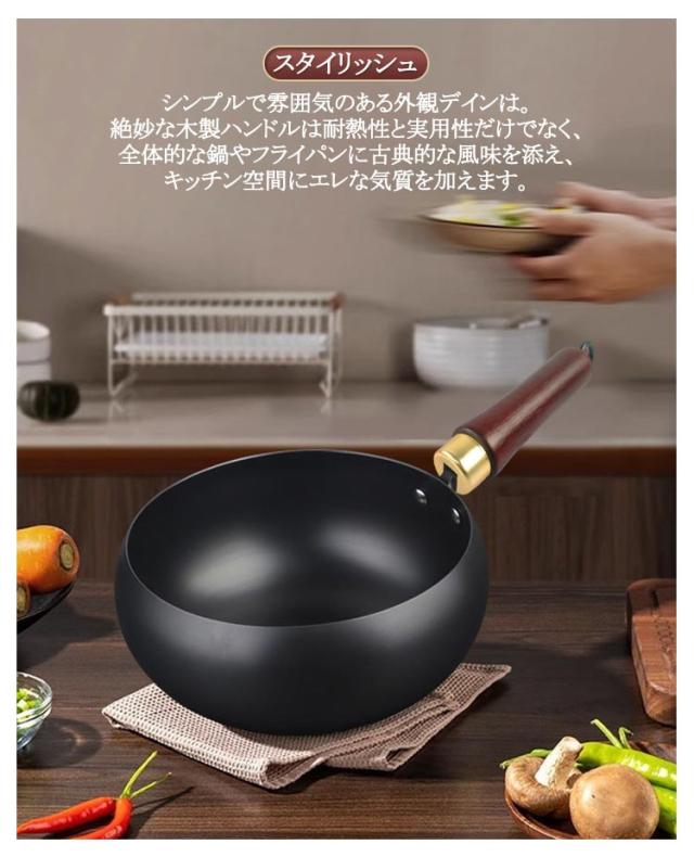 フライパン 鉄鍋 鍋 木柄 24cm 中華鍋 鉄フライパン 焦げ付かない 伝統鉄鍋 鉄製中華鍋 焦げ付き防止 軽量設計 省エネ ガス代節約 錆びない仕様 ガス/IH対応 化学コーティング無添加 鉄手作り鉄鍋 鉄分補給可能 野菜炒め・揚げ物・煮込み万能 家庭用調理鍋 洗いやすい 蓋付き