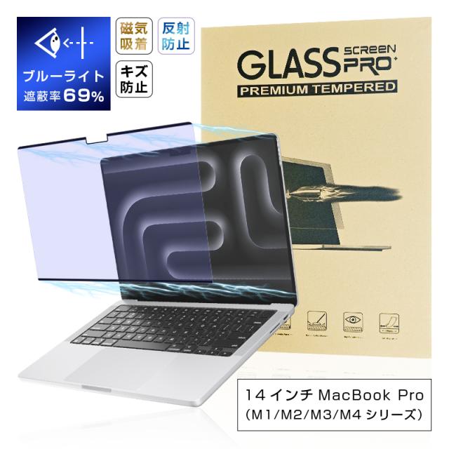 14インチ MacBook Pro(M1 Pro/M1 Max.2021/M2 Pro/M2 Max.2023/M3/M4)対応 ブルーライトカット 液晶保護PETフィルム マグネット 目の負担軽減 耐衝撃 傷防止 14in MacBook Pro (M3 Pro)(M3 Max) 画面シール 14インチ MacBook Pro (M4 Pro)(M4 Max) 0.3mm超薄型 疎油 撥水