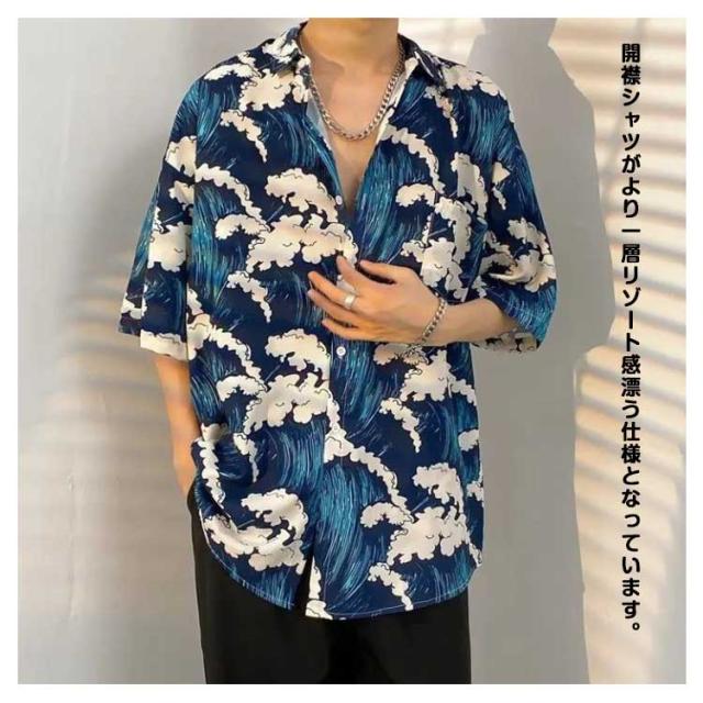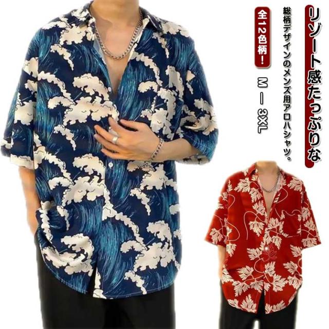 メンズ ビーチシャツ 花柄 和柄 ボタニカル柄 花柄シャツ 夏 半袖 シャツ アロハシャツ 総柄 カジュアルシャツ アロハシャツ 男性シャツ ハワイ旅行 サーフ系 アロハシャツ リゾート感 夏服 大きいサイズ メンズファッション ビーチ 旅行 キレイめ 父の日