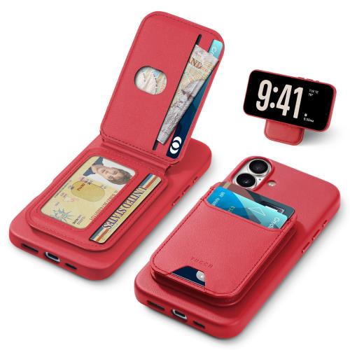TUCCH iPhone16 Plus 対応 ケース PUレザー 折畳式カードケース付き アイフォーン16プラス携帯カバー 背面カード収納 軽量 薄型 取り外し可能 磁気吸着 ワイヤレス充電対応 [RFIDブロッキング] 横置きスタンド機能 PU合皮 アイフォン16プラスカバー (2024年発売 あいふぉん16 Plus 6.7インチ 対応) ラズベリーレッド